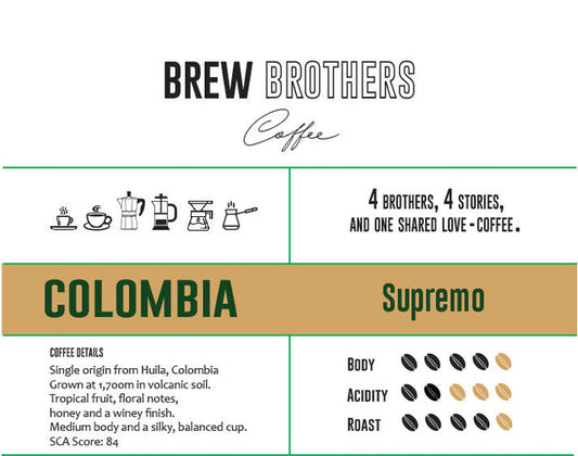 BREW BROTHERS Coffee הוקם על ידי גבי מתוך אהבה אמיתית לקפה ורצון להפוך כל כוס לחוויה אישית ובלתי נשכחת. הקפה נקלה ונארז בישראל מפולים איכותיים שנבחרים בקפידה מרחבי העולם, תוך הקפדה על טריות, דיוק וחדשנות. כל קפה שתפגשו כאן נבנה במחשבה על הרגעים הקטנים של היום - אלה שמתחילים ונגמרים עם קפה טוב.